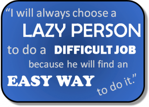 There is a quote on the internet, misattributed to Bill Gates, saying, “I will always choose a lazy person to do a difficult job, because he will find an easy way to do it.”