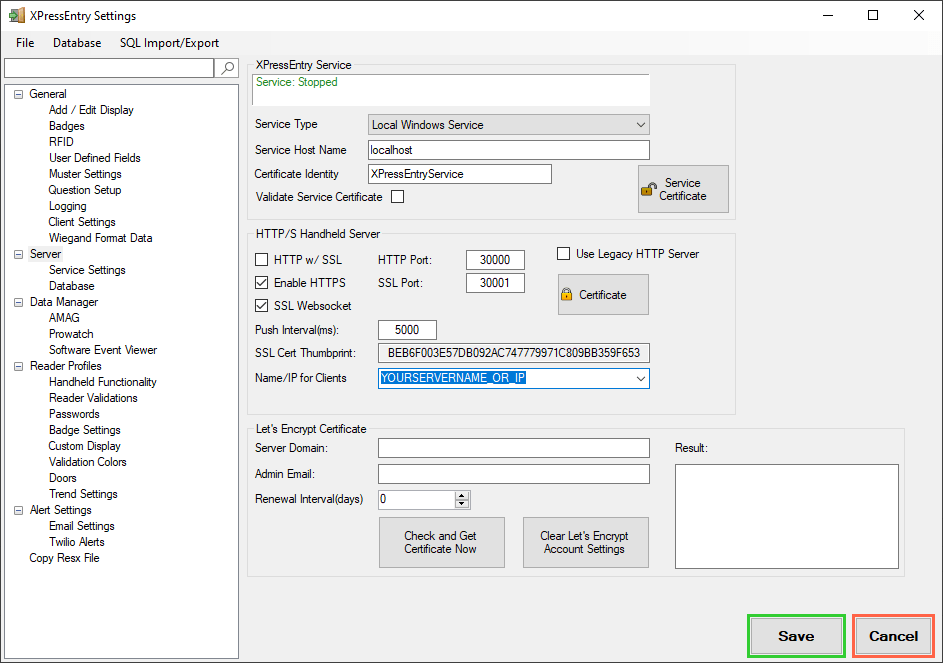 As a good practice, make sure your server is setup to use HTTPS and not HTTP for communication. You will want to enter your servers DNS name (preferred) or IP address (not preferred) under the Name/IP for Clients. This is what gets encoded into the QR code so the devices can find the server. If this is not done correctly, nothing else will work!