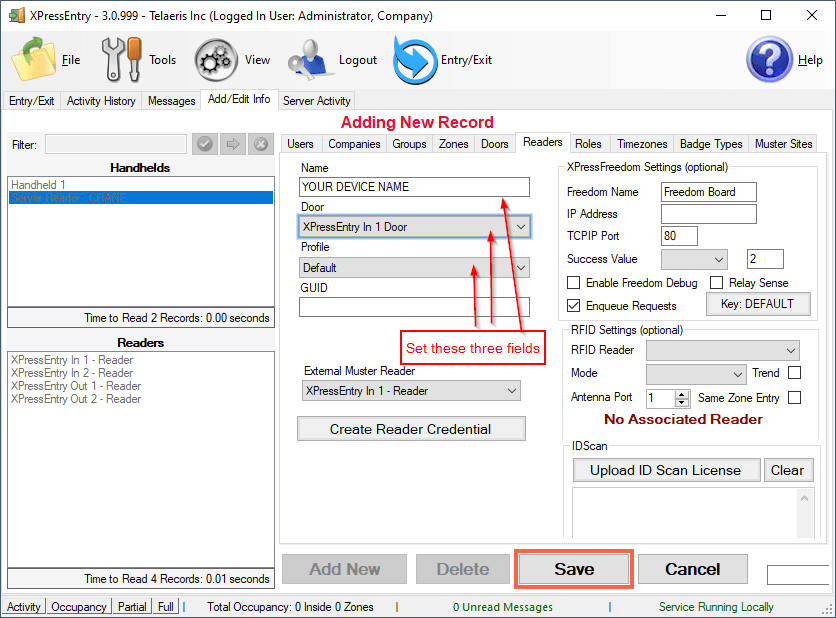 Your device should appear in the Handheld Status form on the server and should start XPressEntry into the default mode for your reader profile.