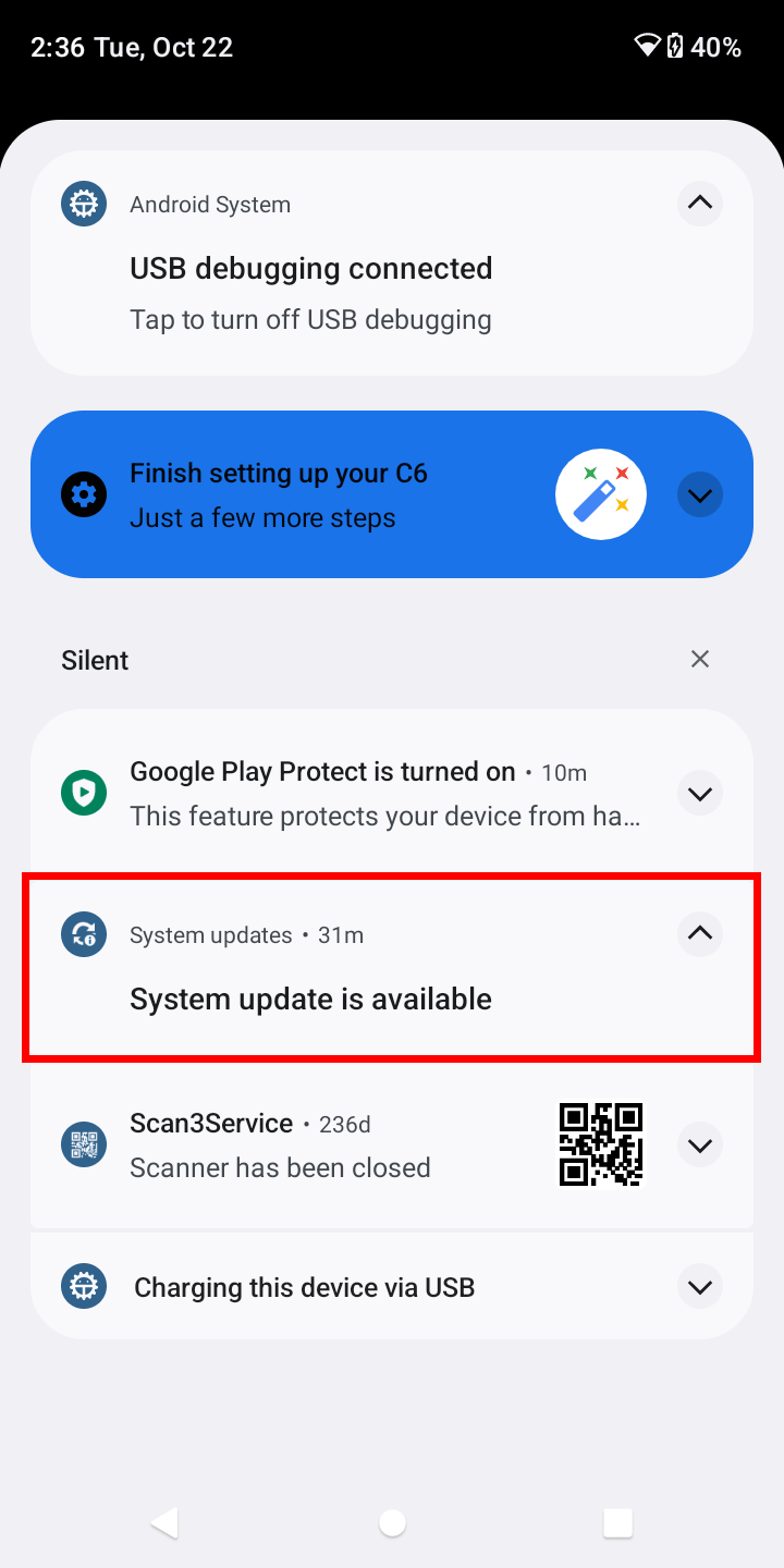 Periodically, Telaeris will release updates to Android Security Patches and Operating System updates that may be downloaded Over The Air (OTA) for the XPID 200.
