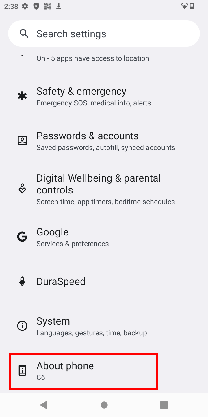 2. Scroll down to About Phone.
