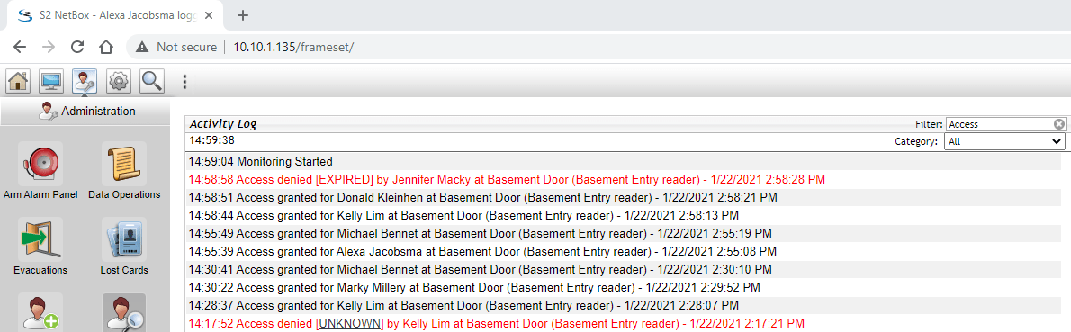 XPressEntry Server displaying cardholder data from Netbox.