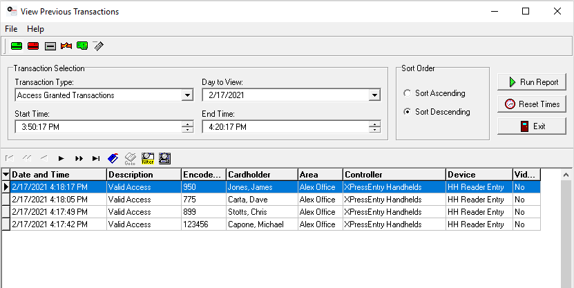 XPressEntry integrates with the SMS access control system and pulls all relevant access control information such as cardholders, new and deleted badges, pictures, access levels, areas, and more. XPressEntry handhelds validate permissions and authenticate credentials against this identity information on record in the SMS database and maintain facility occupancy information.