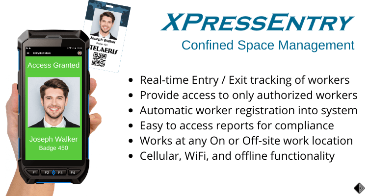- Works for any size confined space, anywhere – XPressEntry handhelds badge and biometric readers have cellular, WiFi, and offline functionality so the confined space work area can be anywhere on or off-site. Additionally, large attendant required, multi-entrant confined spaces can be easily managed with multiple readers.